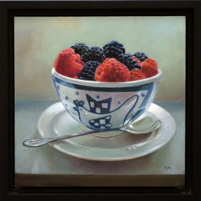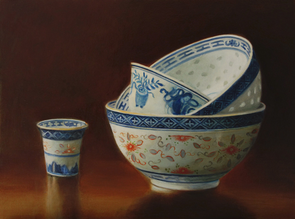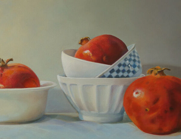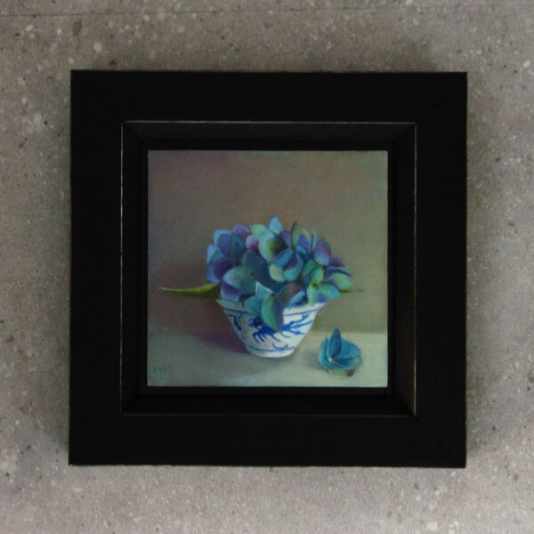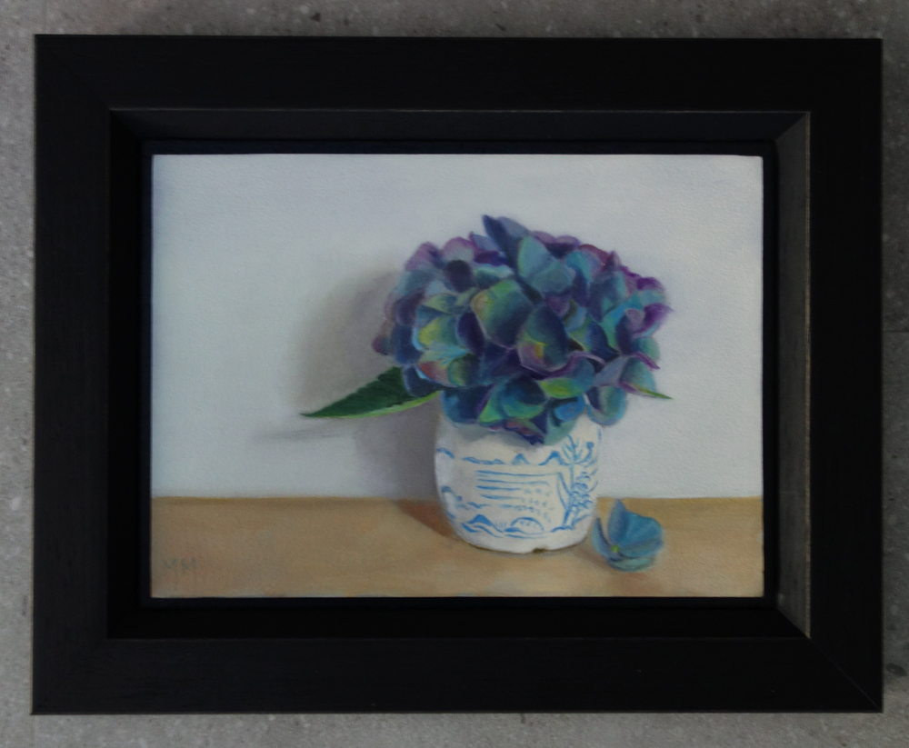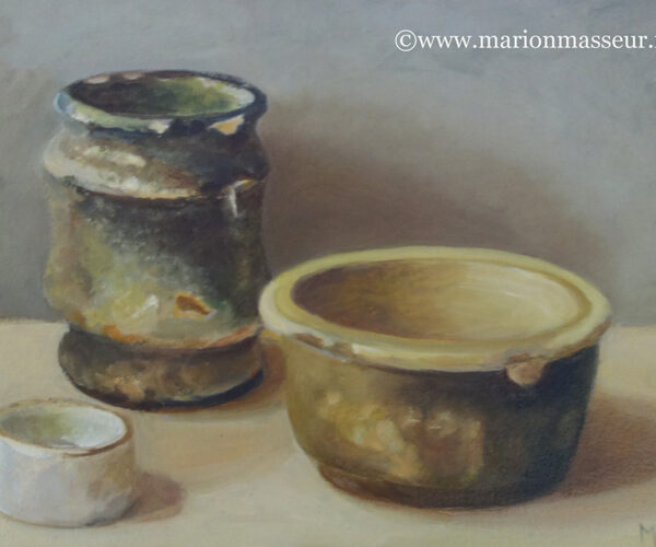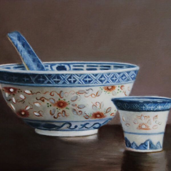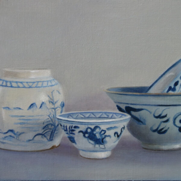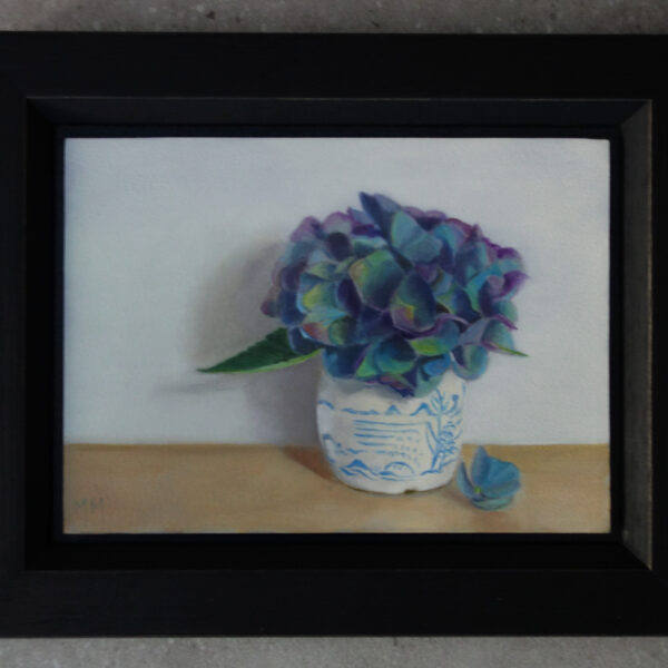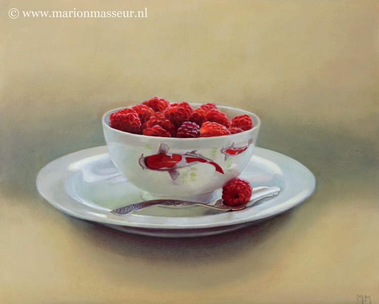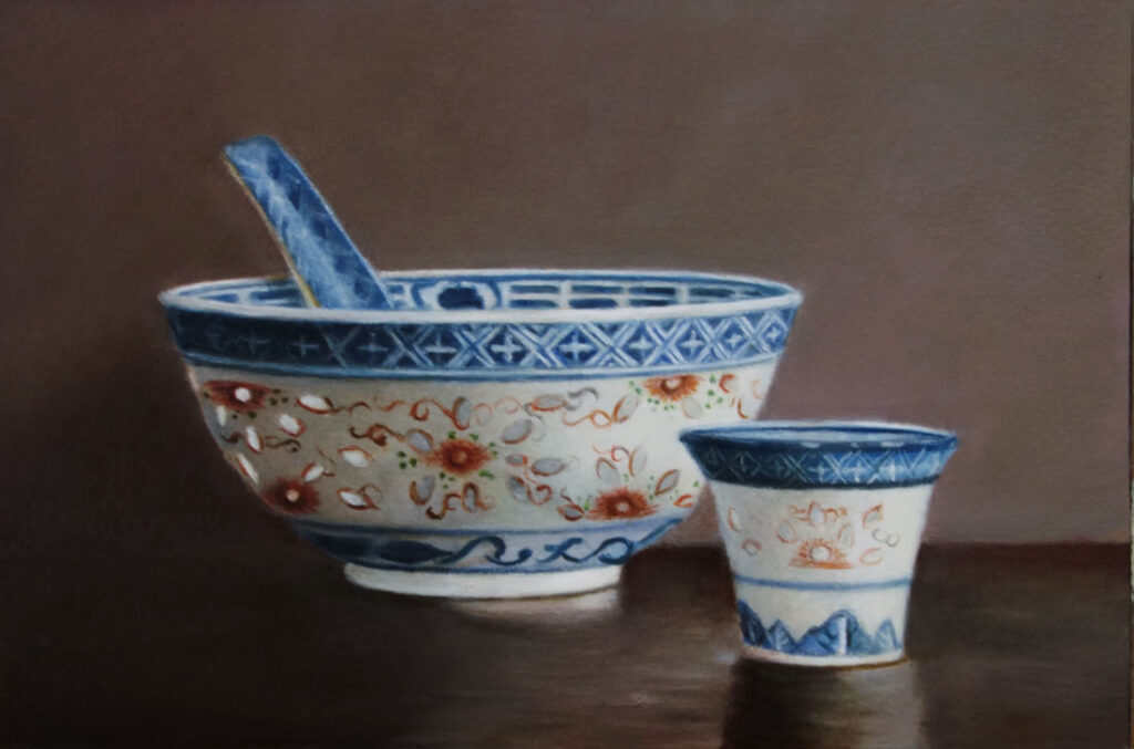 Her subjects she finds in and around the house. These are often objects to which she is very attached. They can range from heirlooms, gifts from friends, objects she has found somewhere at a flea market during a trip. Any object she paints evokes a special memory, and that makes it a wonderful painting experience. She hopes that you will notice that, while viewing her paintings.